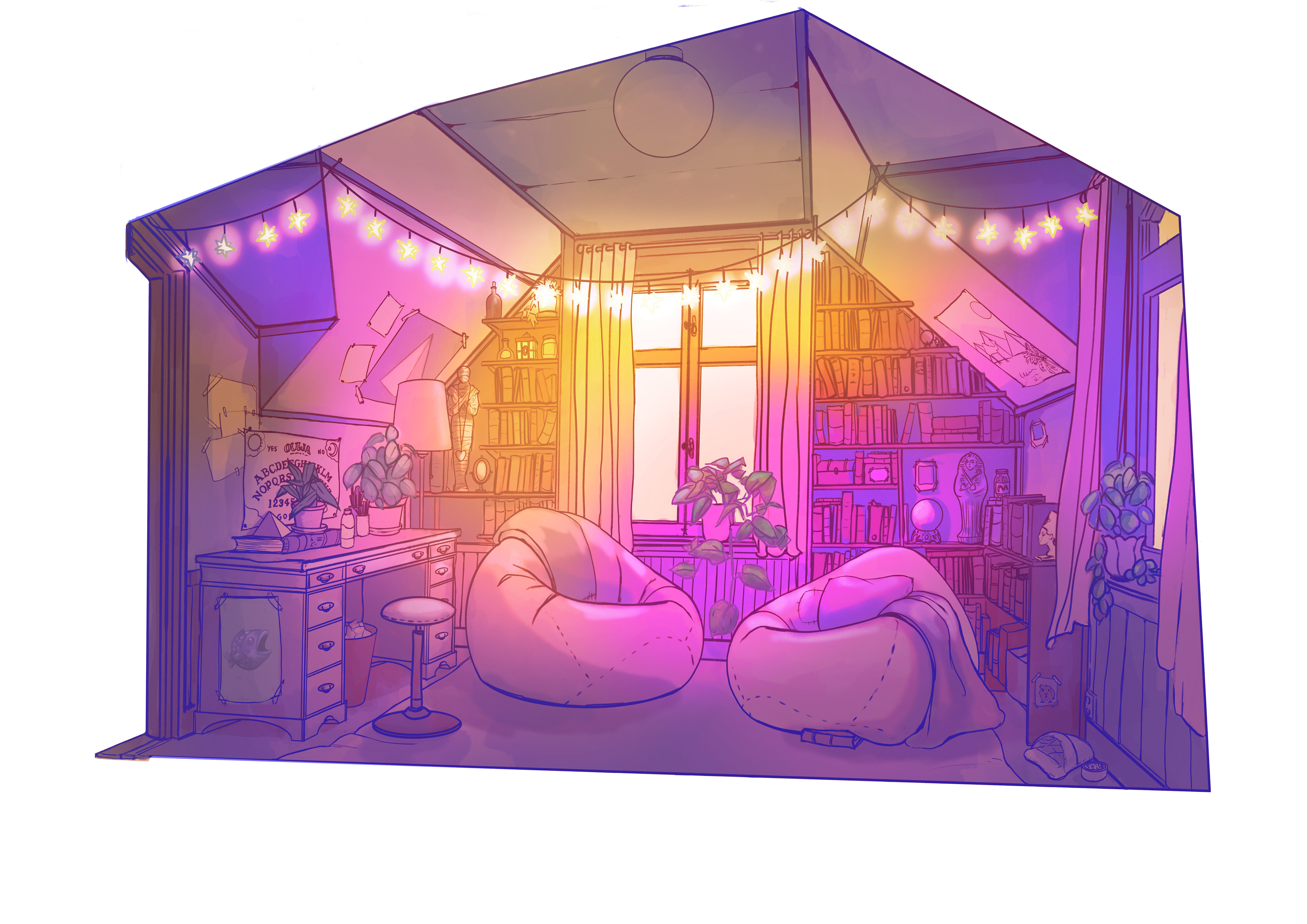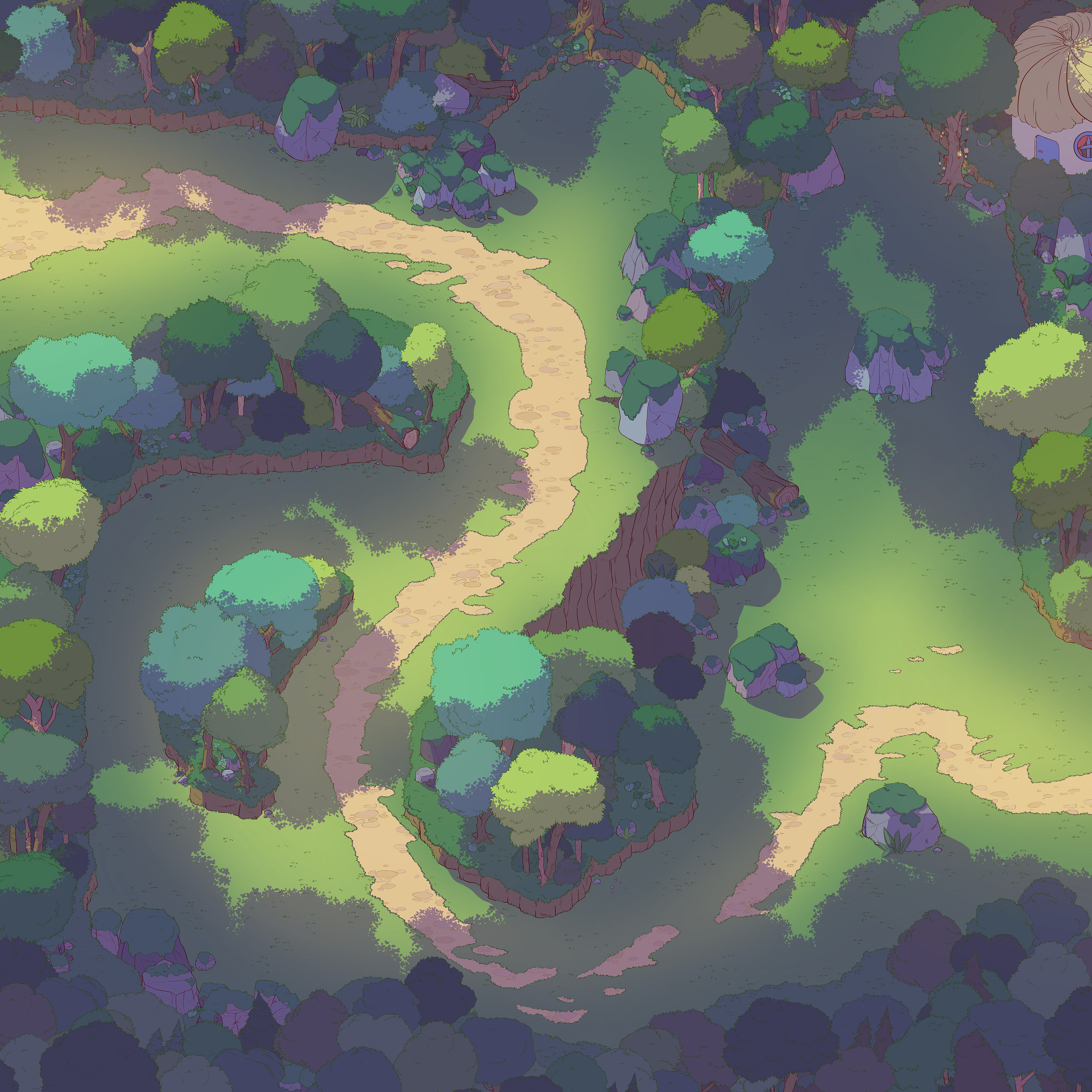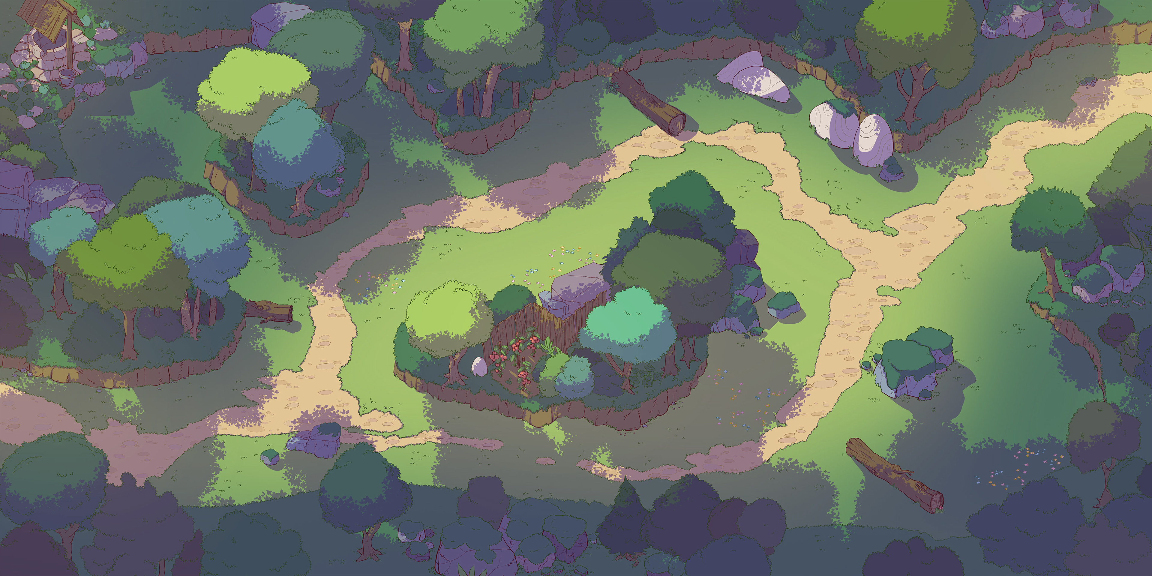 From the hand-drawn fields of Go Fight Fantastic! (Dinomite Games, 2024) to personal pixel explorations and house cutaway drawings, this collection showcases my work in environment design and world-building.